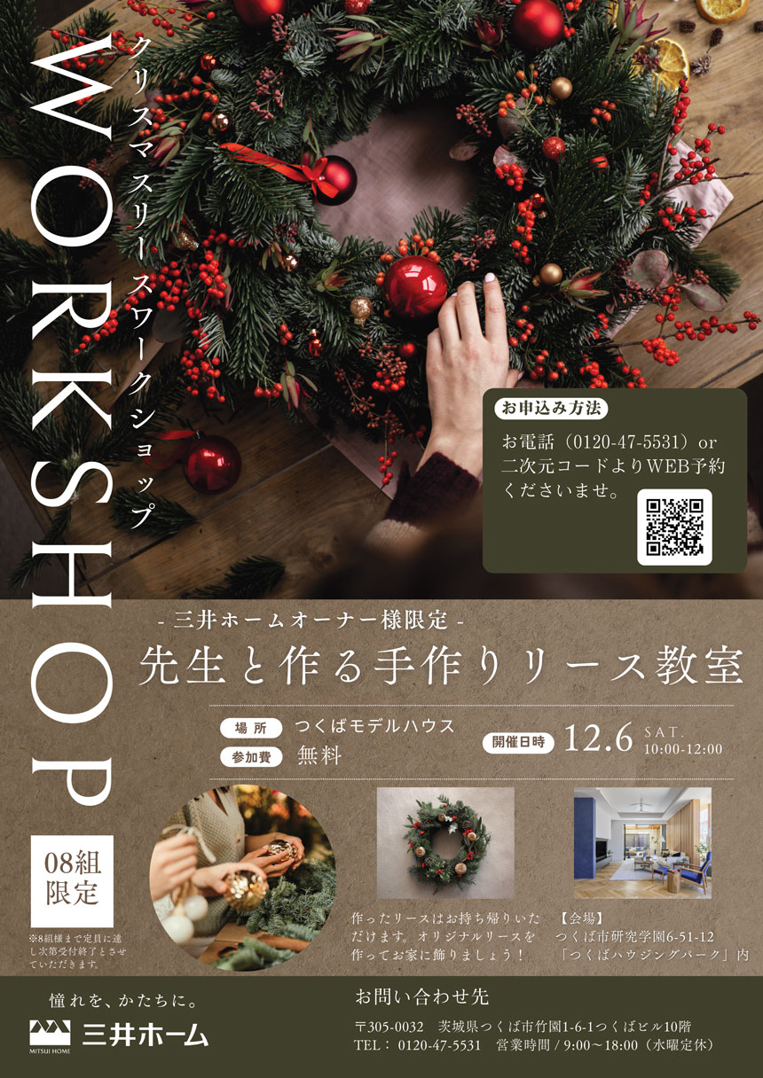 〒305-0817茨城県つくば市研究学園6丁目51番地12「つくばハウジングパーク」内