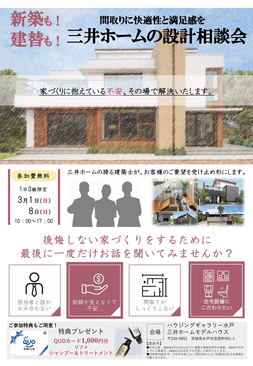 〒310-0852茨城県水戸市笠原町561-1「ハウジングギャラリー水戸」内